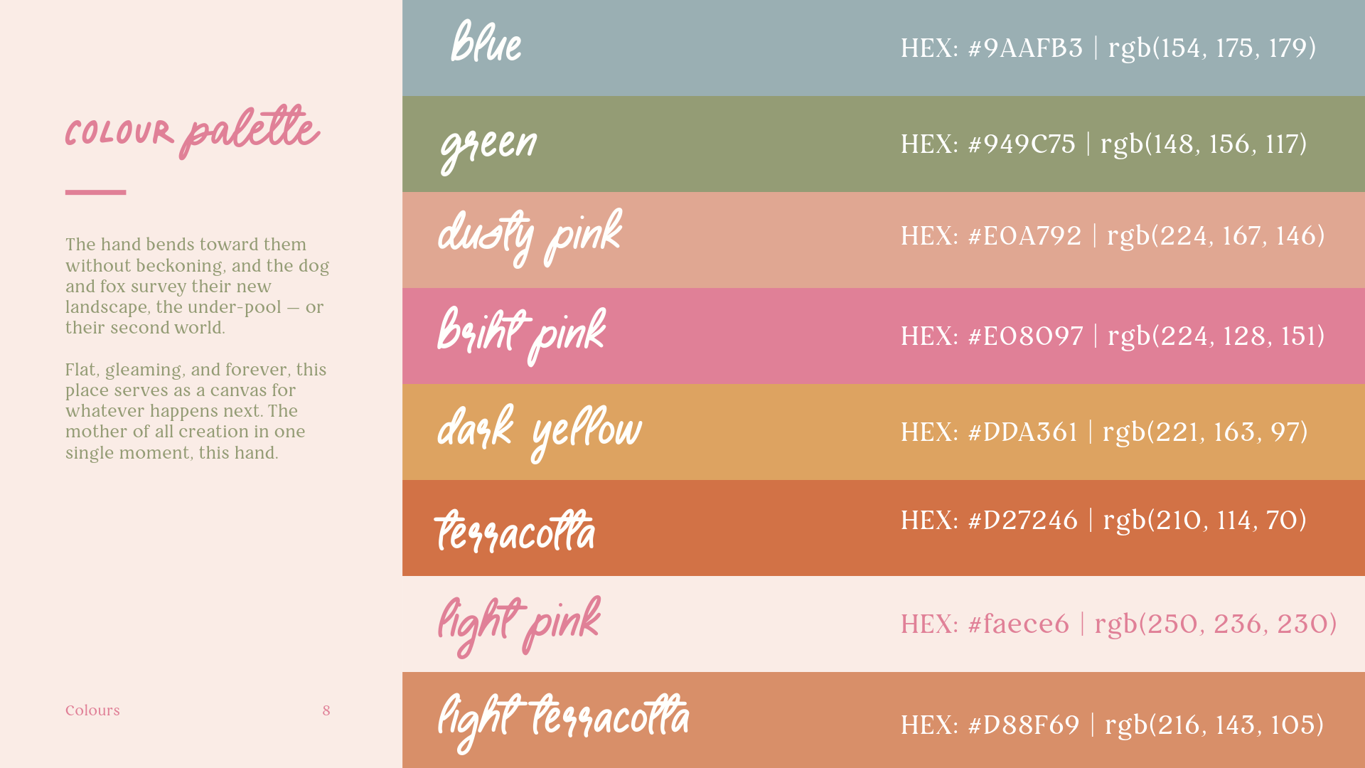 We started with a Pinterest board to shape her direction — pinks, yellows, handwritten elements, and hints of summer sun. From there, we developed a custom brand identity that included: